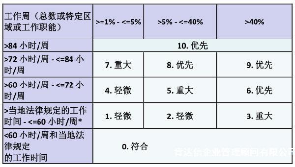 根據情形的程度和嚴重性來確定符合性。即:那些超過限度的工人的數量和比例以及超限程度。其