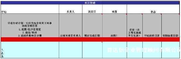 - 行動的檢查項目,以確保它們的持續實施和效果,直至實施永久體系糾正行動。