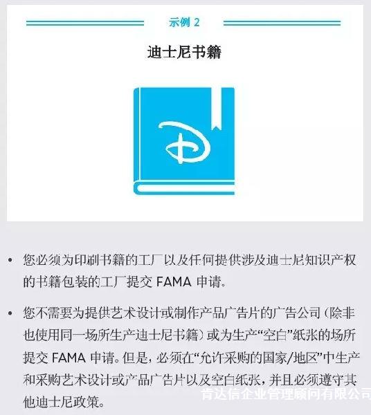 在迪士尼審核和批準“FAMA 申請”和任何必要的“ILS評審報告”之后,您會收到簽署的 FAMA授權證。只有簽署的 FAMA 授權證能證明迪士尼對工廠的授權。您僅可在收到針對該工廠的簽署 FAMA 授權證之后才可開始在該工廠內生產。