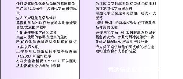 生產(chǎn)區(qū)的員工必須意識到他們所使用的化學(xué)品對他們的健康有危害并且對他們的安全以及工廠建筑物和環(huán)境都有其它的風(fēng)險(xiǎn)。如果員工基本了解化學(xué)品的潛在危害以及為避免這些風(fēng)險(xiǎn)所采取的適當(dāng)預(yù)防措施,那么,他們將會很好地利用這些知識。本文著重介紹使用危險(xiǎn)化學(xué)品對人體的影響,而對環(huán)境的影響,參見環(huán)境指南。