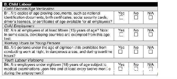 Note: This document is a preparatory tool only and should not be construed as legal advice or a guarantee of an audit outcome in any way. National labour, safety and environmental laws are taken into account during audits and, therefore, vendors should be familiar with local legal requirements.